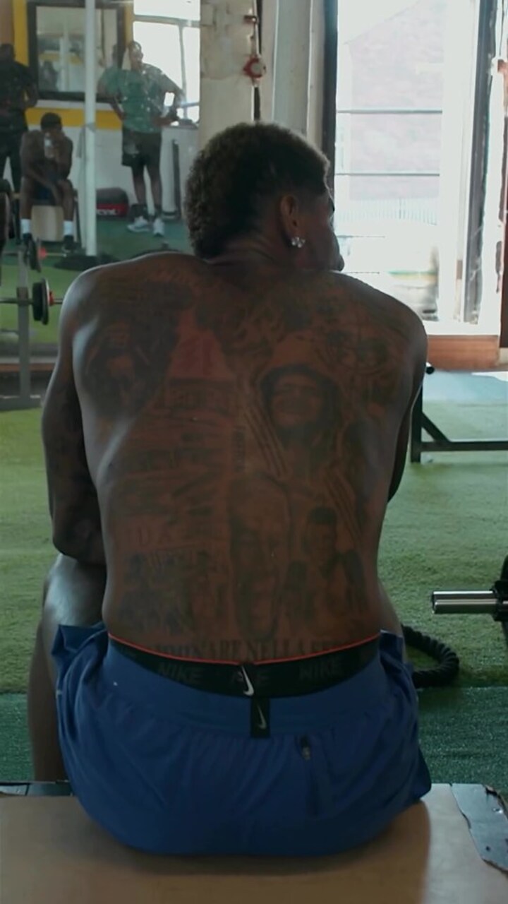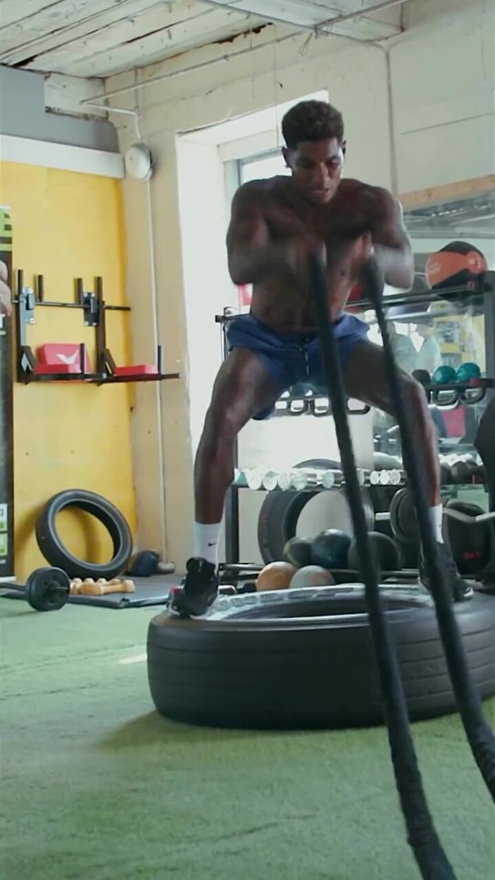 Arm curls, battle rope and weight pushing activities are all also seen in the video, with Rashford visibly panting with his arms on his knees at the end of the workout.