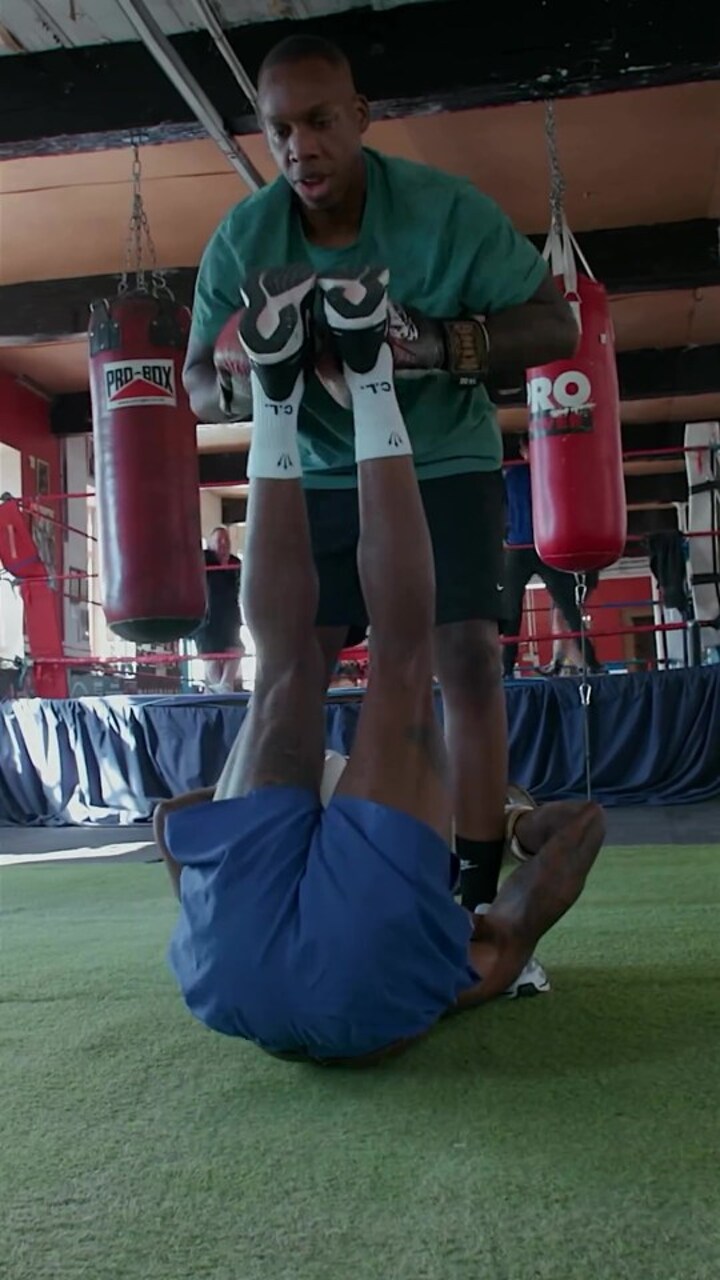 In the video, he can be seen without a top on and tensing his abs while getting punched in the stomach before he is later seen having a medicine ball bounced on there.