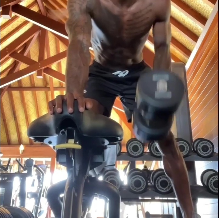 The English forward posted a 90-second video on social media showcasing his hard work as he lifted weights during the summer break.