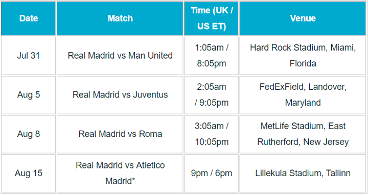 Real Madrid pre-season fixtures