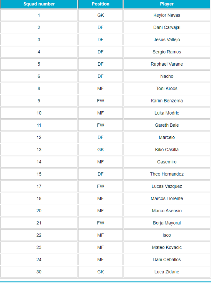 Real Madrid 2018-19 squad numbers