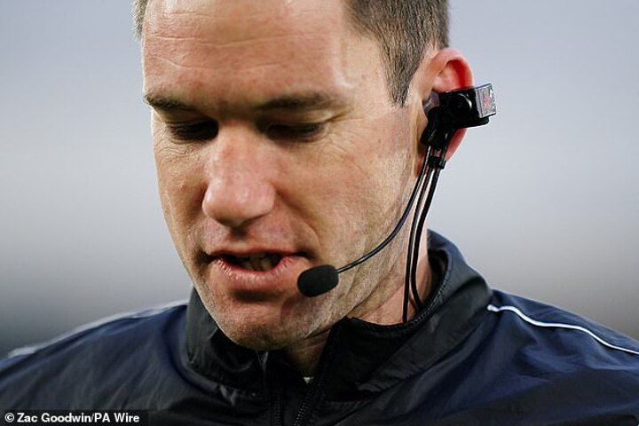 Mounted to his head and connected to the referee's usual communications system, it was the first time that one had been worn by an official in the top flight.
