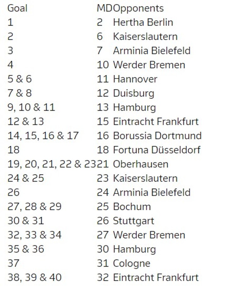 Müller's 40 goals: a breakdown
