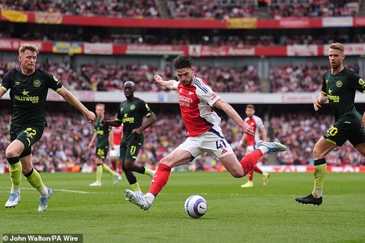 Bryan Mbeumo’s corner-kick was caught by David Raya, the goalkeeper rolling the ball underarm to Rice.