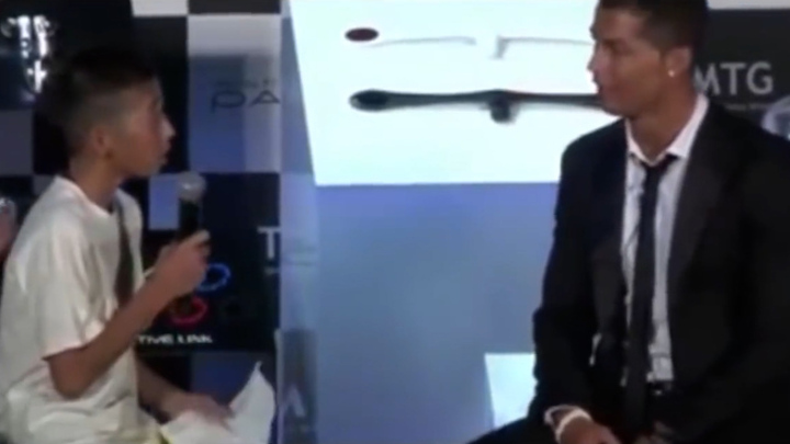When people from the audience laughed at the kid, Ronaldo reacted and stood by the Japanese.