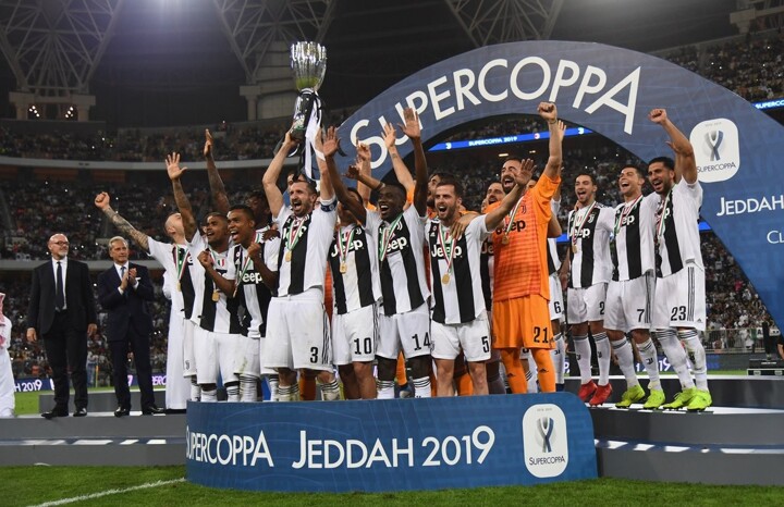 Ronaldo & Juventus stars start their wild celebration after winning the Supercoppa Italiana. Copyright Declaration