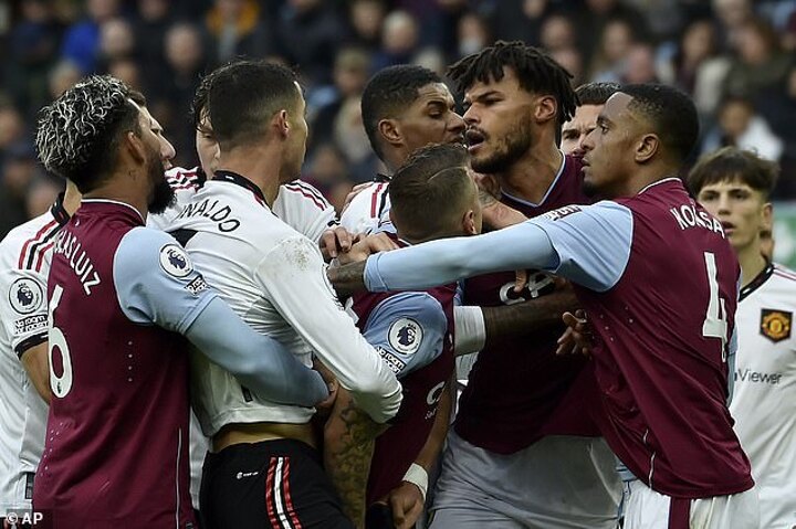 Cristiano Ronaldo and Tyrone Mings were caught up in an on-field tussle during Aston Villa's 3-1 win over Manchester United on Sunday.