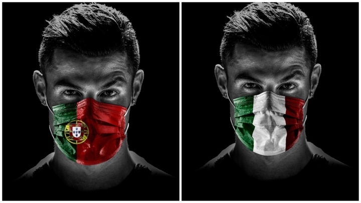 The Portugal international did so posing with masks showing the flags of his home country and the country in which he lives, with Italy having been impacted particularly severely.