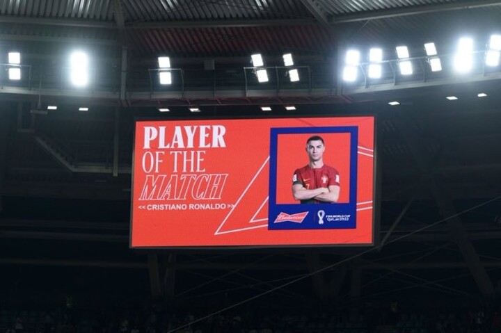 Cristiano Ronaldo has been named Man of the Match against Ghana. He’s now the player with most official MOTM awards at the World Cup (7).