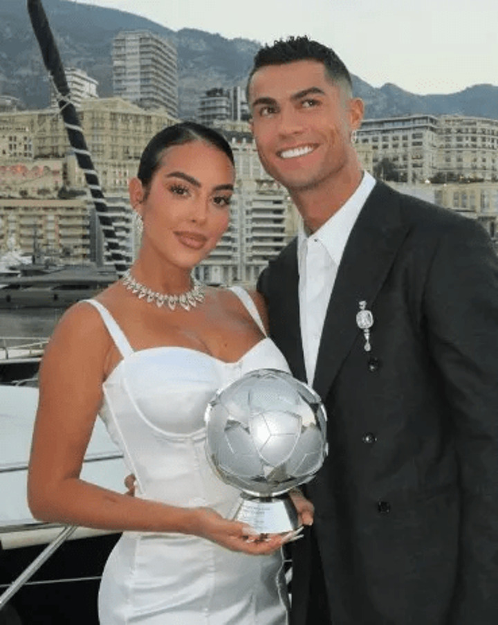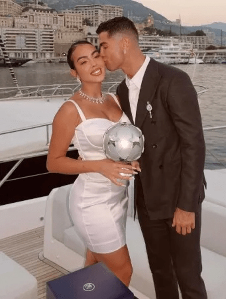 Ronaldo was all smiles as he was presented with his glittering award and while on a yacht with his girlfriend Georgina Rodriguez.