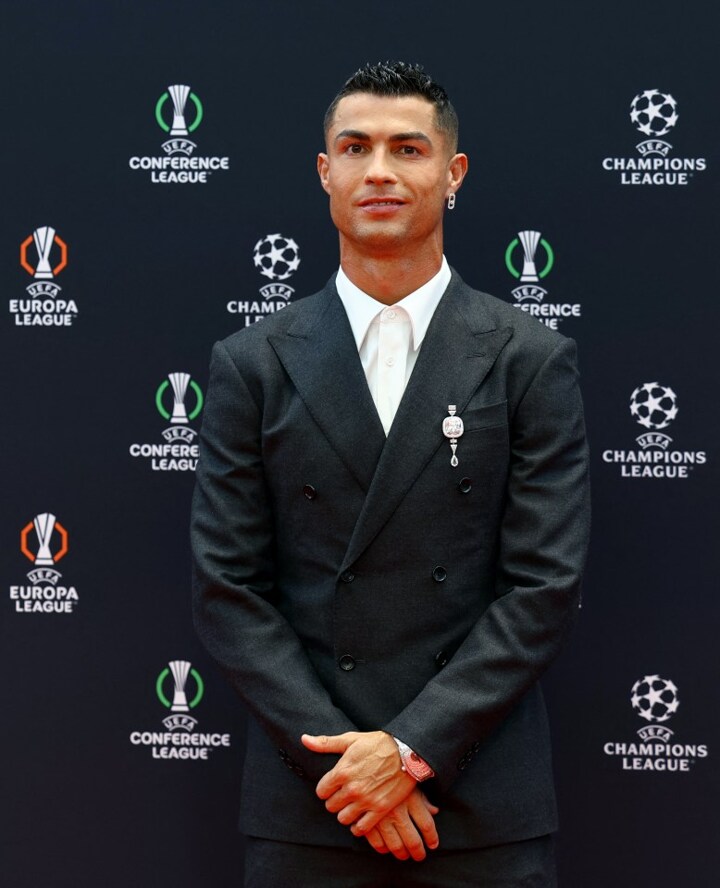 CRISTIANO RONALDO wore diamond jewellery worth £6million to the Champions League draw.