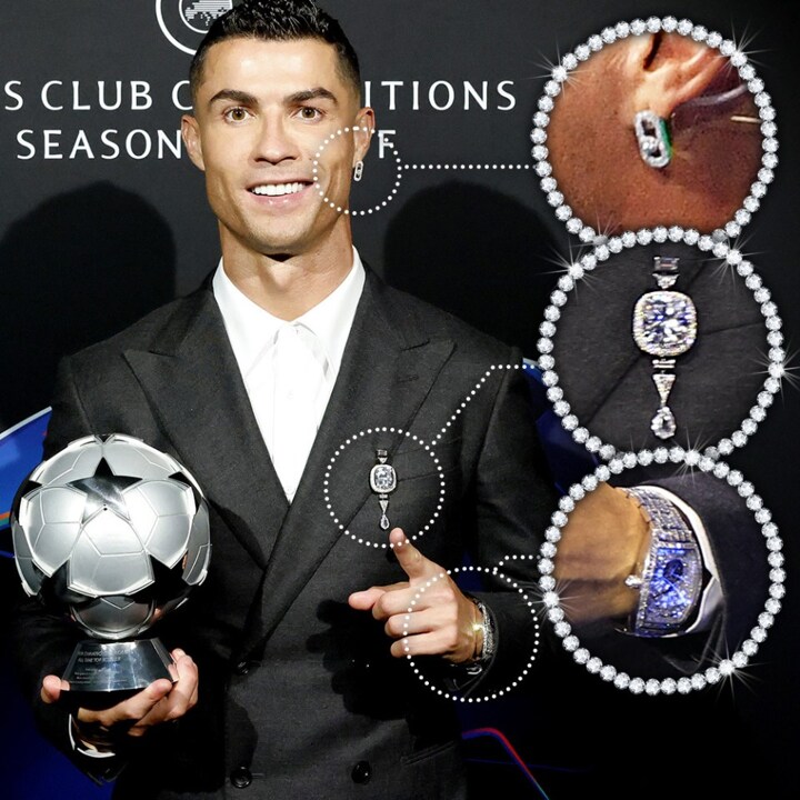 Ronaldo's outfit was accompanied by three stunning diamonds worth a combined £6m.
