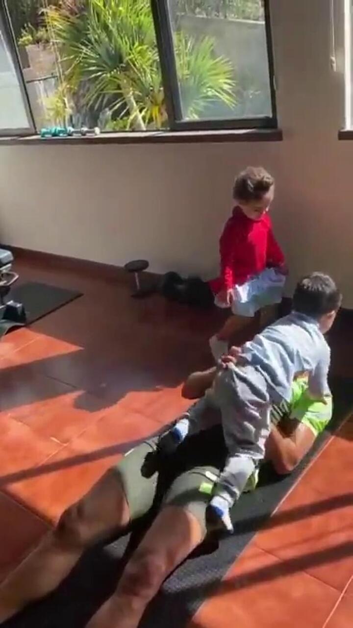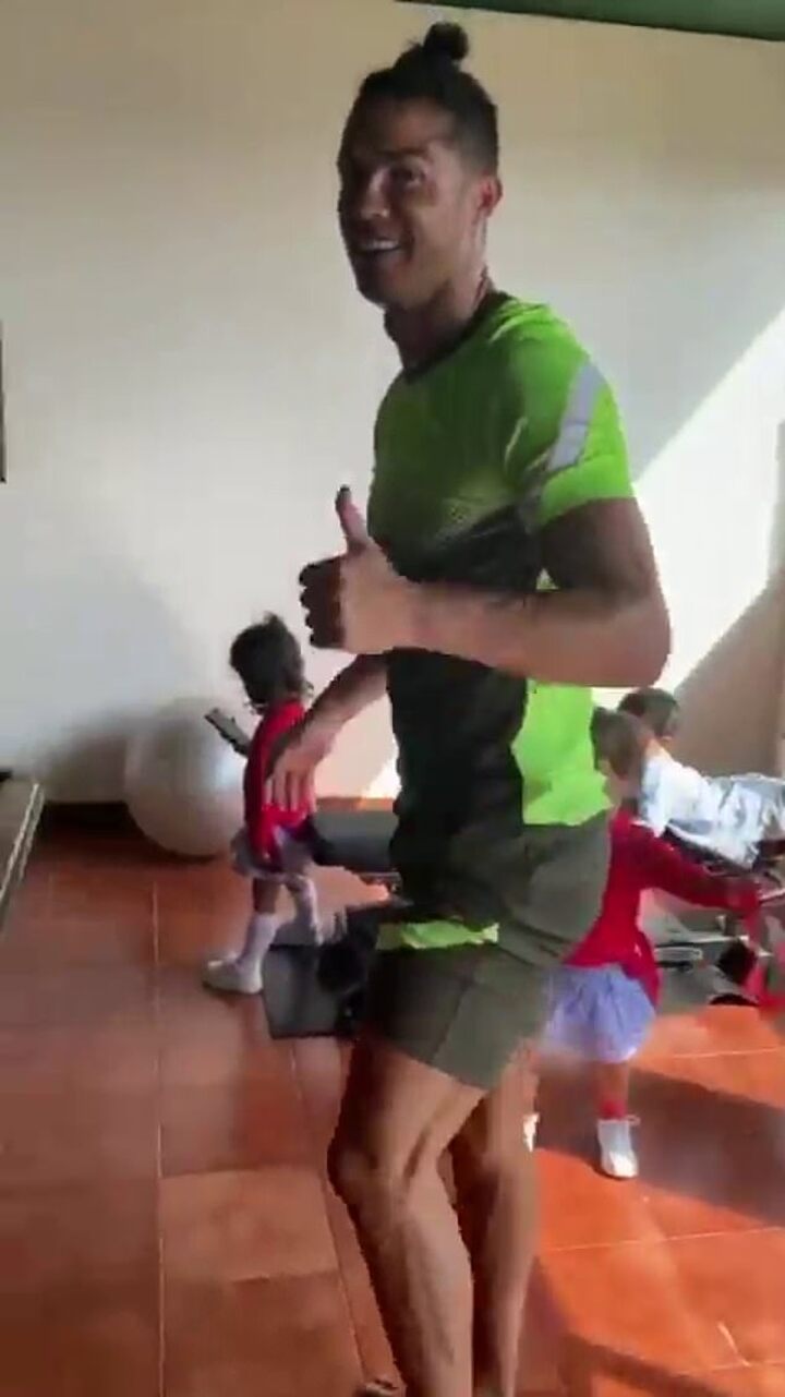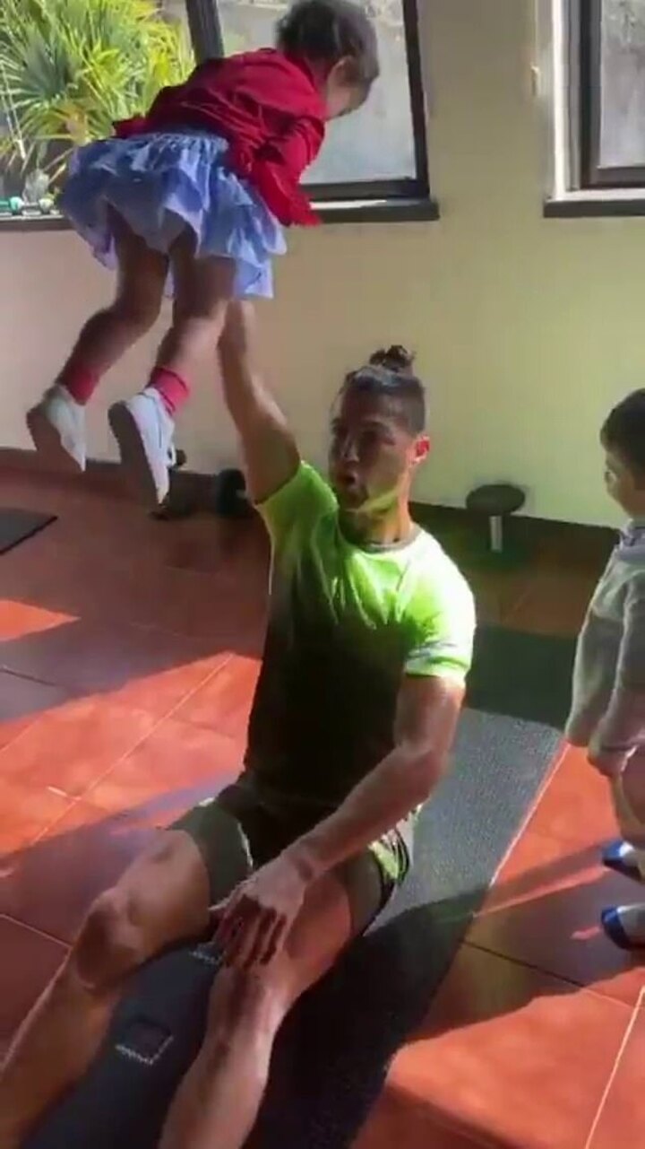 The Portuguese international takes matters into his own hands though and decides to multitask, resuming his fitness routine while also lifting up his children just to add to the difficulty.