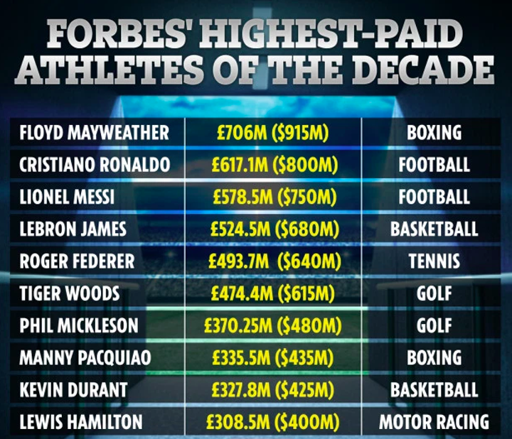 American lifestyle magazine Forbes counted down the top ten richest athletes of the 2010s and the Floyd Mayweather came way out on top. He has congratulated Cristiano Ronaldo and Lionel Messi after it was revealed they were the highest-paid athletes of the decade.