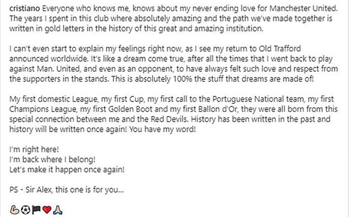 'History has been written in the past and history will be written once again! You have my word! I'm right here! I'm back where I belong! Let's make it happen once again! PS - Sir Alex, this one is for you…'