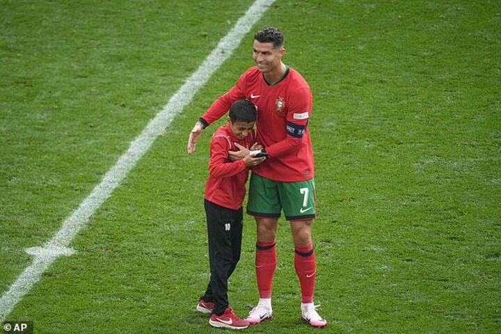 Cristiano Ronaldo made a young child's dream come true after he paused to take a picture with the pitch invading fan midway through Portugal's Euro 2024 clash against Turkey.