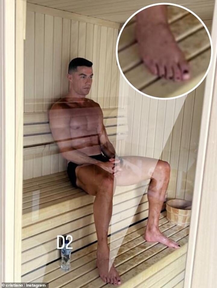 In a recent social media post, fans noticed something unusual in that Ronaldo's toenails were painted black, with one fan replying: 'Did I miss something or everyone else missed it. Did Ronaldo paint his toe nails?'