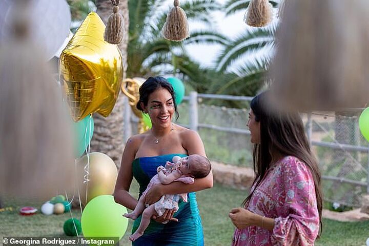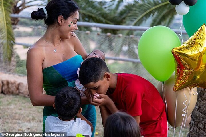Posting a photo for his 430million followers, Ronaldo cradled his daughter while accompanied by Spanish partner Georgina and their four children.