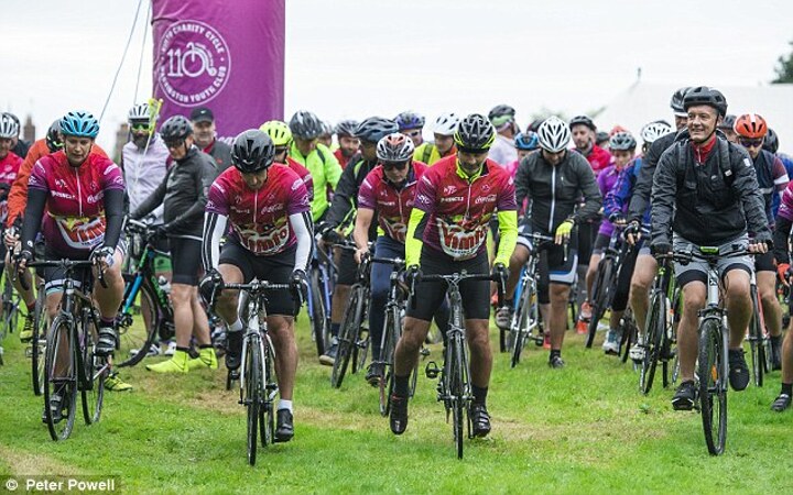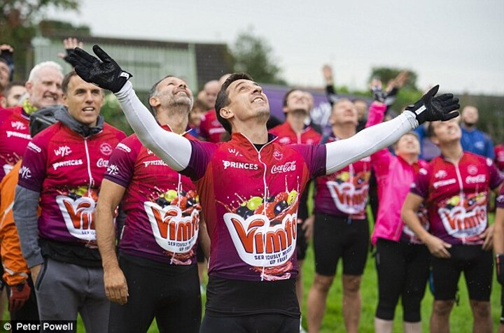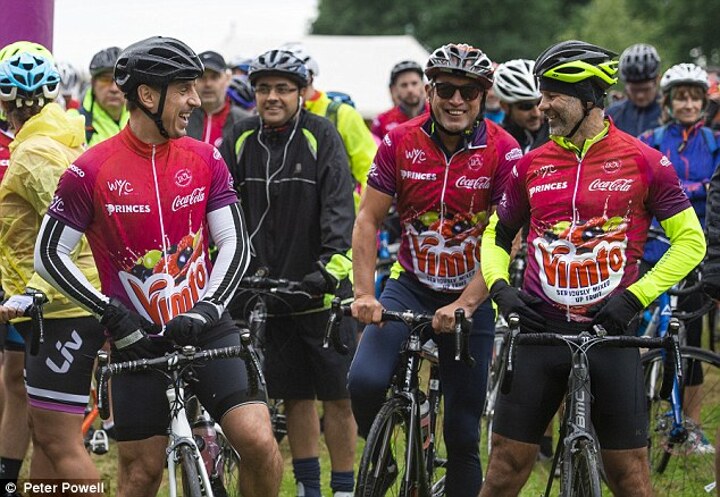 The trio made special appearances as Vimto put on its biggest charity fundraiser yet with 110 cyclists taking on the gruelling challenge through the Cheshire countryside.