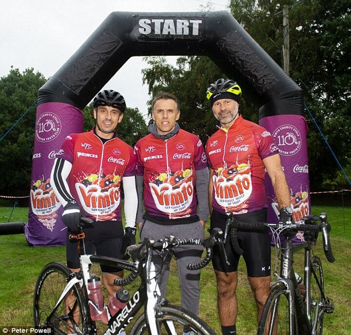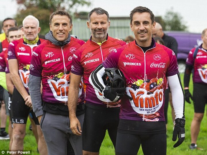 Manchester United legends Ryan Giggs, Gary Neville and Phil Neville took part in a 110km charity bike ride in order to raise money for Warrington Youth Club on Sunday.