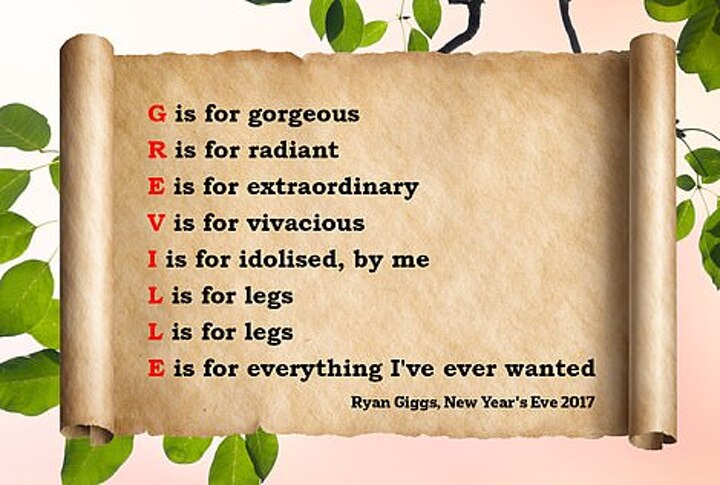 2) 'G is for gorgeous, R is for radiant...': Giggs's acrostic poem to Kate, New Year's Eve 2017