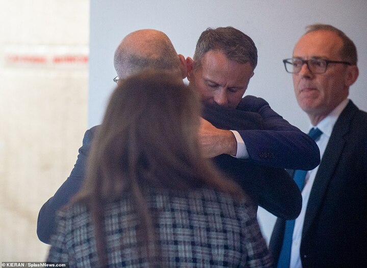Ryan Giggs hugged his lawyer after his domestic violence trial dramatically collapsed today when the jury failed to reach verdicts over allegations he headbutted his ex-girlfriend and coercive and controlling behaviour - meaning he is now facing a possible second trial.