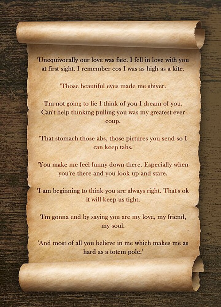 In a series of toe-curling love notes, the former footballer also compared Miss Greville to Fort Knox, 'because it's full of gold'.