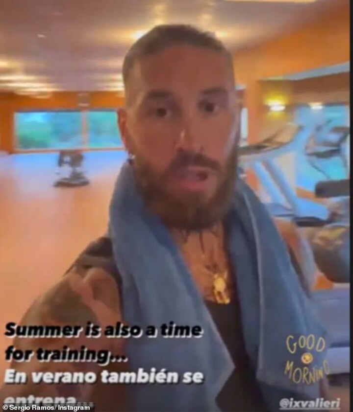 Sergio Ramos, meanwhile, uploaded a clip of himself doing weight training in the gym, with the sweating PSG defender adding the caption: 'Summer is also a time for training' in English and Spanish.
