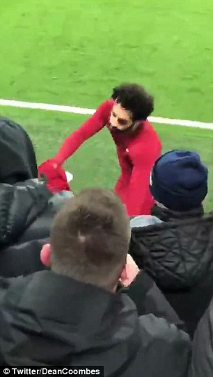 One supporter filmed the exchange and graced Salah as 'the Egyptian King' as he rewarded the young kid for his patience throughout.