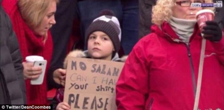 The sign simply read: 'Mo Salah, can I have your shirt please'.