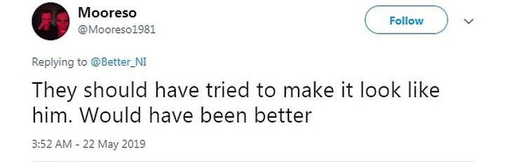 @Mooreso1981 wrote: 'They should have tried to make it look like him. Would have been better'.