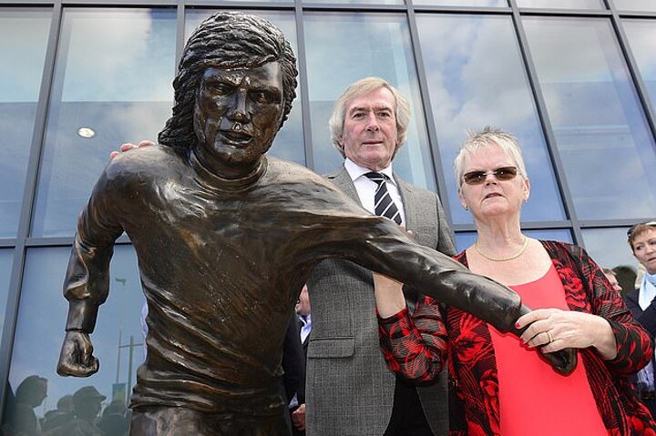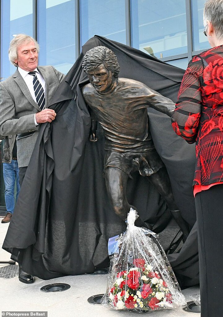 A statue of the Manchester United legend has been erected outside Windsor Park in Belfast and was presented by Pat Jennings and Gerry Armstrong on what would have been his 73rd birthday.