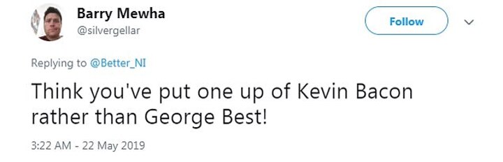 There were even some comparisons to a Hollywood actor. @silvergellar quipped: 'Think you've put one up of Kevin Bacon rather than George Best!'.