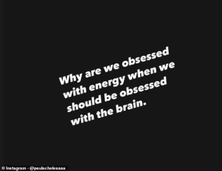 Posting to his Instagram story on Tuesday, Scholes said: 'Why are we obsessed with energy when we should be obsessed with the brain.'