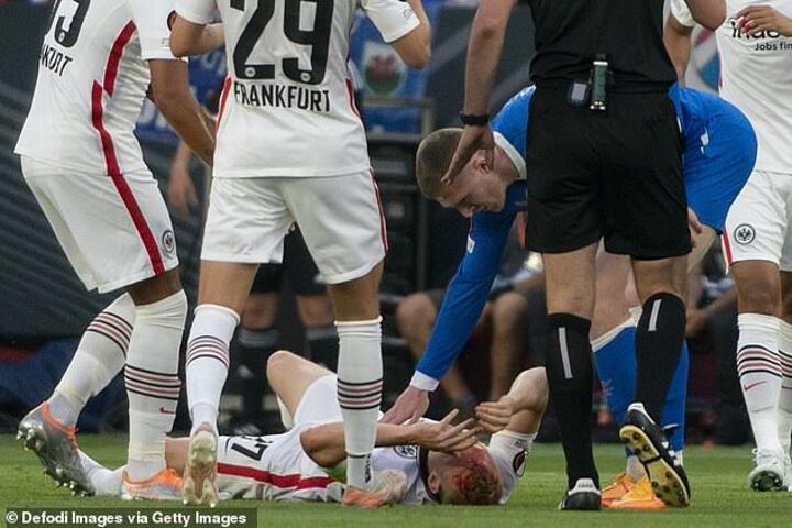 The incident occurred as the two players clashed just outside of the Frankfurt box in the sixth minute and there was a lengthy delay as Rode received treatment.