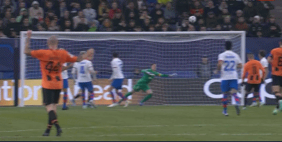 Danylo Sikan with the perfect header to give Shakhtar Donetsk the lead against Barcelona!