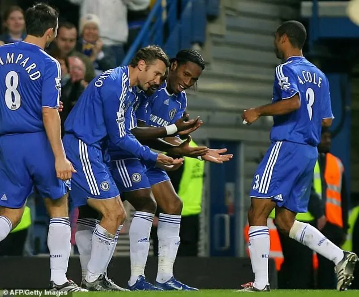 Which he celebrated with a baby cradle celebration alongside team-mates Frank Lampard, Ashley Cole and Didier Drogba.