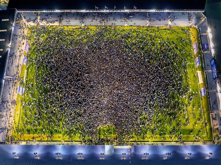 The jubilant scenes in the stands spilled onto the turf as fans invaded the pitch at the full-time whistle.