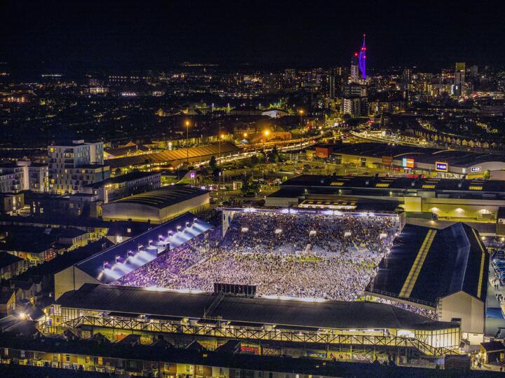Pompey secured promotion as League One champions with a 3-2 win at Fratton Park on Tuesday night.