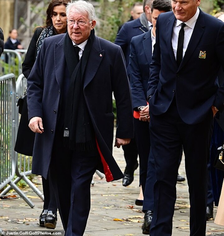 Old Trafford legend Sir Alex Fergusson, who as a manager led Man United to 30 titles, including 13 Premier League championships and five FA Cup victories, arrived at Manchester Cathedral to lead the Red Devil contingent.