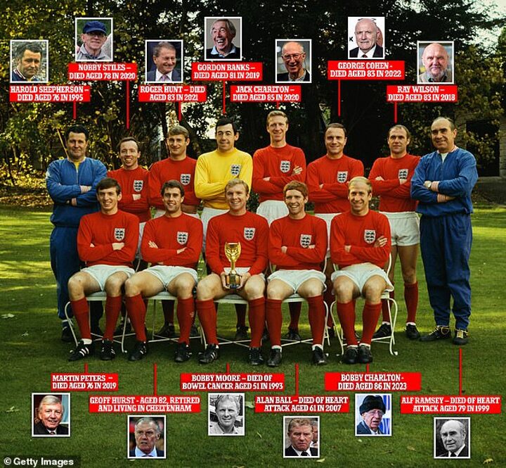 Captain Bobby Moore died of bowel cancer aged 51 back in 1993, while Alan Ball suffered a fatal heart attach aged 61 in 2007.