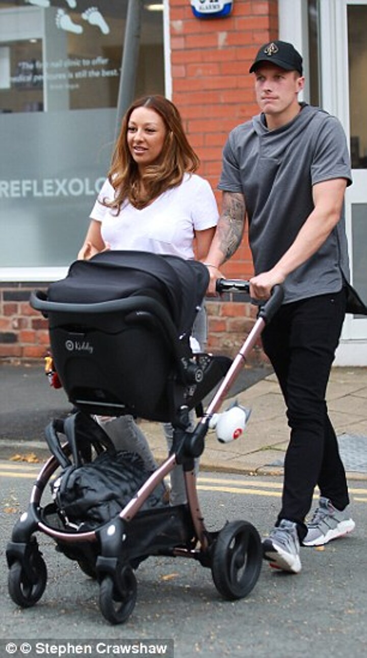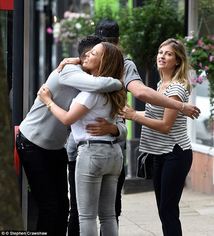 Jones and wife Kaya Hall also brought along their newborn baby Alaria as the two couples went for a bite to eat at Parea restaurant in Alderley Edge.