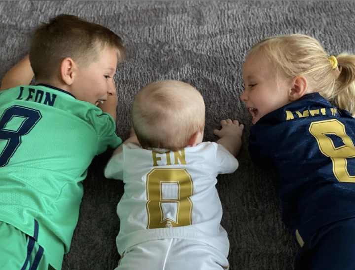 Toni Kroos' wife Jessica shares a photo on Instagram as his three kid wear Real Madrid kit.