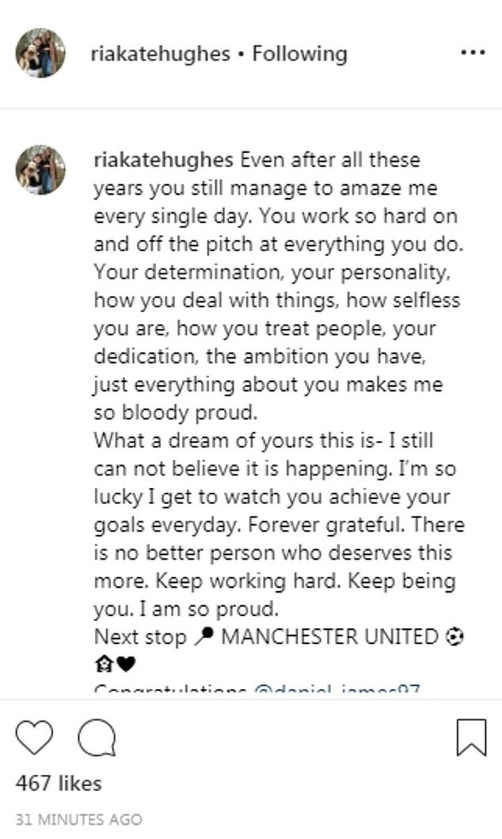 Wales winger Daniel James is set to make an electrifying addition to Manchester United after signing a £17M transfer from Swansea, and his proud girlfriend has taken to Instagram to share in her partner's joy.