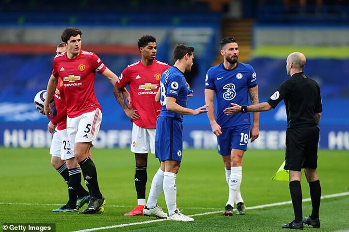 Attwell then duly went to the pitchside monitor to re-watch the action, at which point he was engulfed in a crowd of Man United players venting their feelings that Hudson-Odoi had committed a penalty offence.