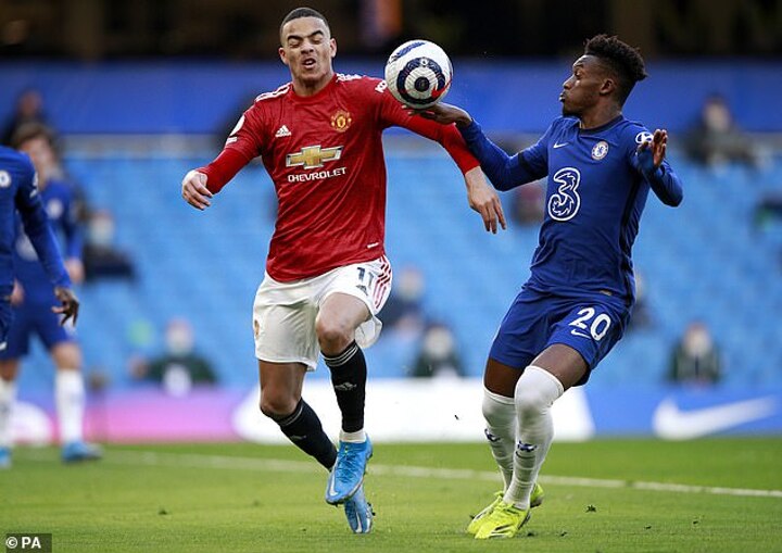 Callum Hudson-Odoi was tangling with Mason Greenwood in the Chelsea penalty area after Edouard Mendy parried a Marcus Rashford free-kick, when he appeared to handle the ball. Attwell was advised by the VAR to have another look at the incident once play stopped.