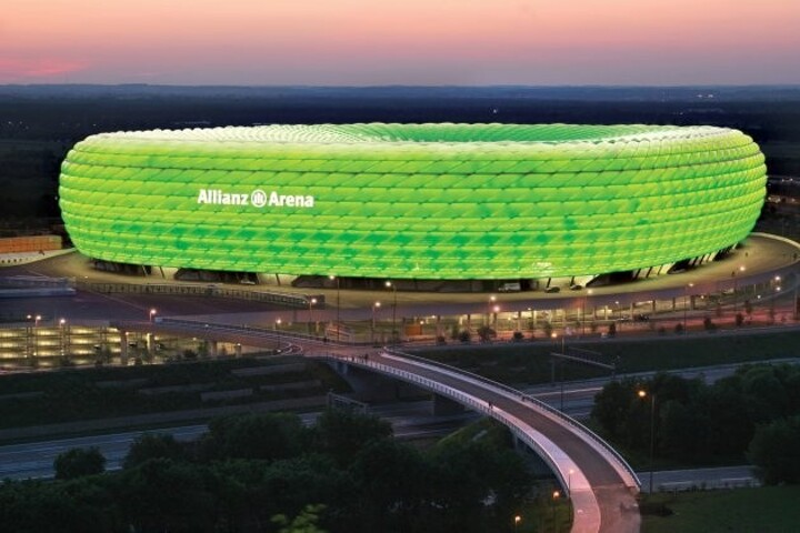 Opened in 2005, this football arena has an iconic design being home to both Munich-based football teams: Bayern Munich and 1860 Munich. Depending on which team is playing, the stadium can change colors from red to blue and many more. For this purpose, ETFE-foil air panels are used. It is considered one of the best stadiums in the world for its style and shape. The Allianz Arena can host 75,000 spectators.
