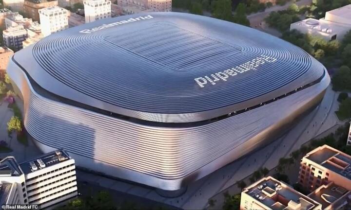 Real Madrid's £500million redesign of the Santiago Bernabeu, expected to be completed by 2022, features a chrome finish to the exterior and a retractable roof.