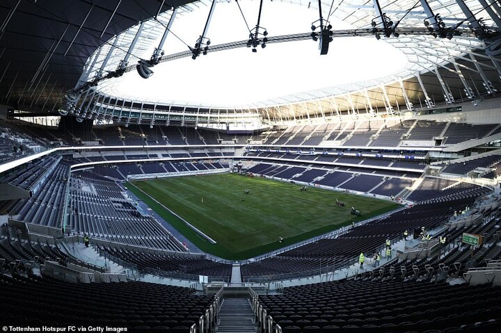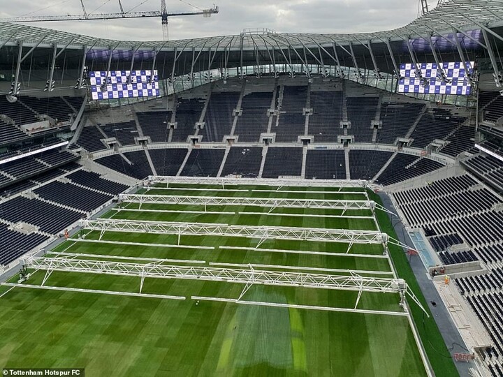 Tottenham's new stadium boasts a retractable pitch, with the grass surface for football matches mounted on three steel trays - each of which weighs 3,000 tonnes - that slot away under the South Stand to reveal an artificial NFL surface underneath. Incredibly, the transition takes just 25 minutes.