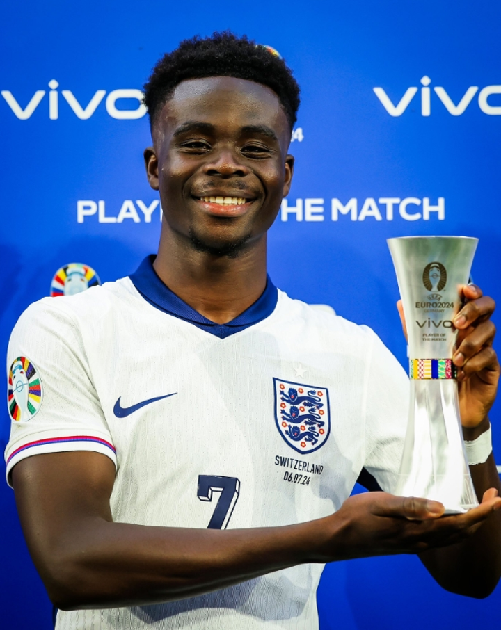 UEFA Man of the Match for Switzerland vs England: Bukayo Saka. 🏴